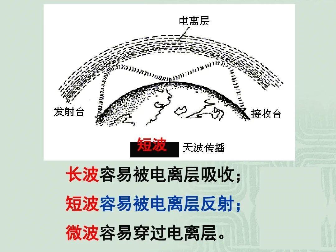 电离层对电波的反射作用和电波的频率以及电离层本身的密度有关。电波的频率越低越容易被反射:长波、中波、短波可以被反射,超短波、微波在一般情况下只能穿透电离层而不返回地面。电离层的密度越大对电波的反射作用越强:F2层的电子密度最大,它对电波的反射作用最大:凌晨时分电离层密度最小,只有低频率的电波才有可能被反射,其余都穿透出去了。