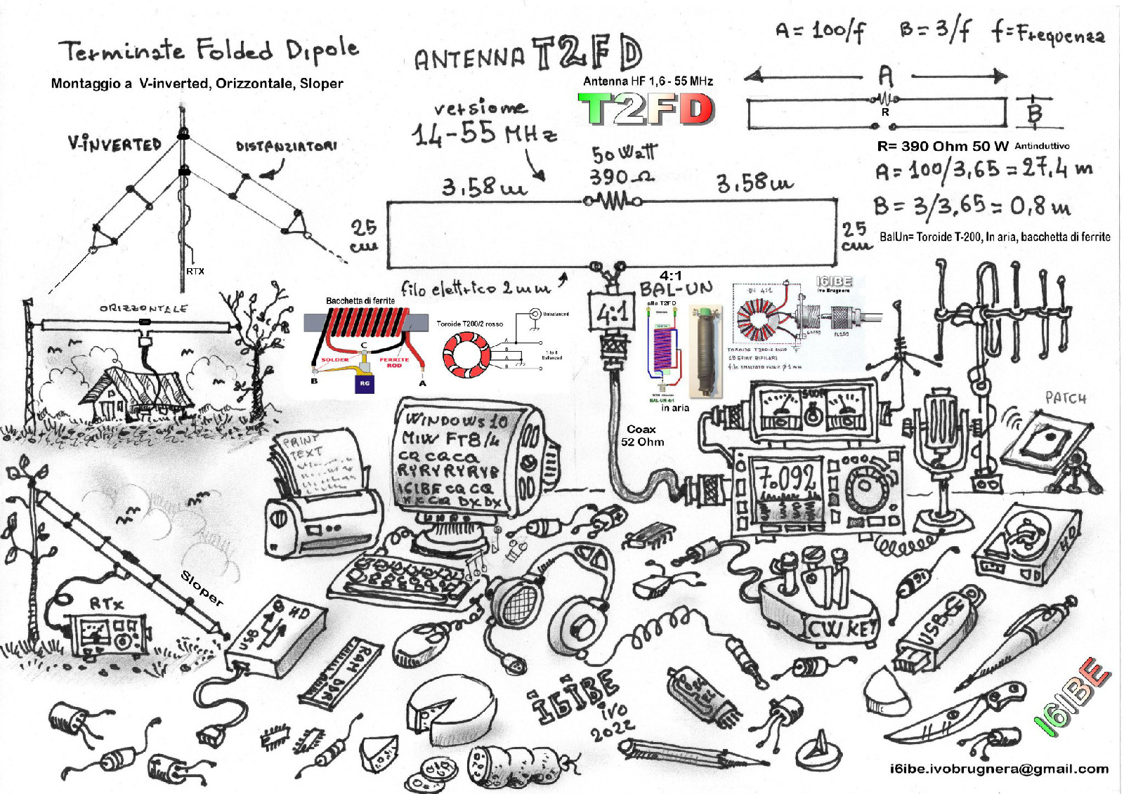 Antenne T2FD e D2T HF 0-30 MHz filari Militari I6IBE Ivo Brugnera