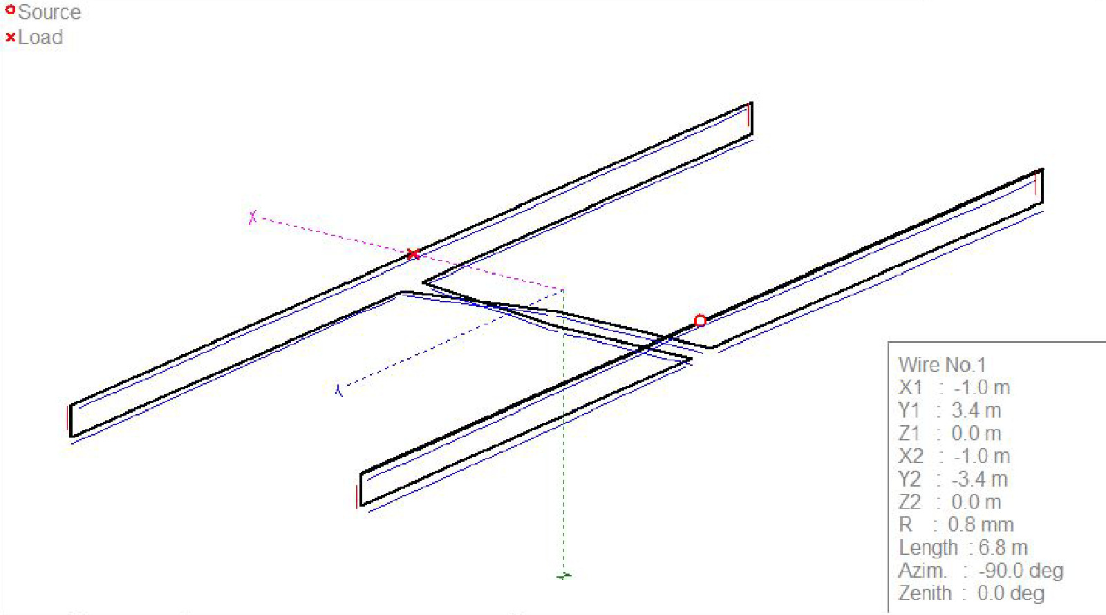 Antenna HF T2FD Terminated Folded Dipole. Dipolo ripiegato terminato, filare a basso co