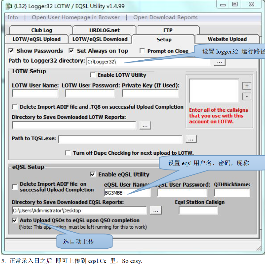 logger32软件能设置成自动上传日志到eQSL【转自BG3MBB】