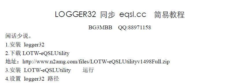这几天一直在用eQSL,还是很不错的,不过也有个问题困扰,就是logger32和eQSL的联动问题,搜索了一下,发现BG3MMB给出了解答,下面引用一下,希望对大家有所帮助。
